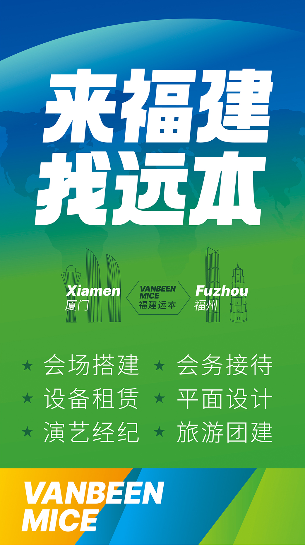 廈門遠本成立于2013年,是一家集策劃設計、落地搭建以及會議接待等全案服務的DMC公司。公司擁有LED屏幕、燈光音響、木作工廠等專業(yè)舞美設備,擁有一批專業(yè)穩(wěn)定的策劃設計和會務接待團隊,能夠快速、精準地為客戶提供優(yōu)質的策劃、設計、搭建、接待等服務。公司已服務過華為、阿里、麥當勞、中國移動、埃克森美孚、興業(yè)銀行、招商銀行、華潤三九、齊魯制藥、萬邦制藥等國內外知名企業(yè),并成功入選中國國旅、中旅、康輝國旅、錦江國旅、中智商展、墨馬傳媒等國內知名PCO公司供應商庫。